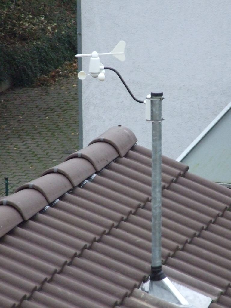 Der Windsensor ist in einer Höhe von ca. 6 Metern auf einem Dach im Garten befestigt.